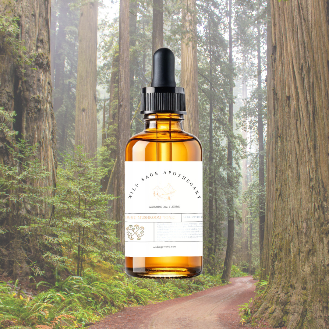Full-spectrum eight-mushroom tonic with the heart-centered rose flower.
